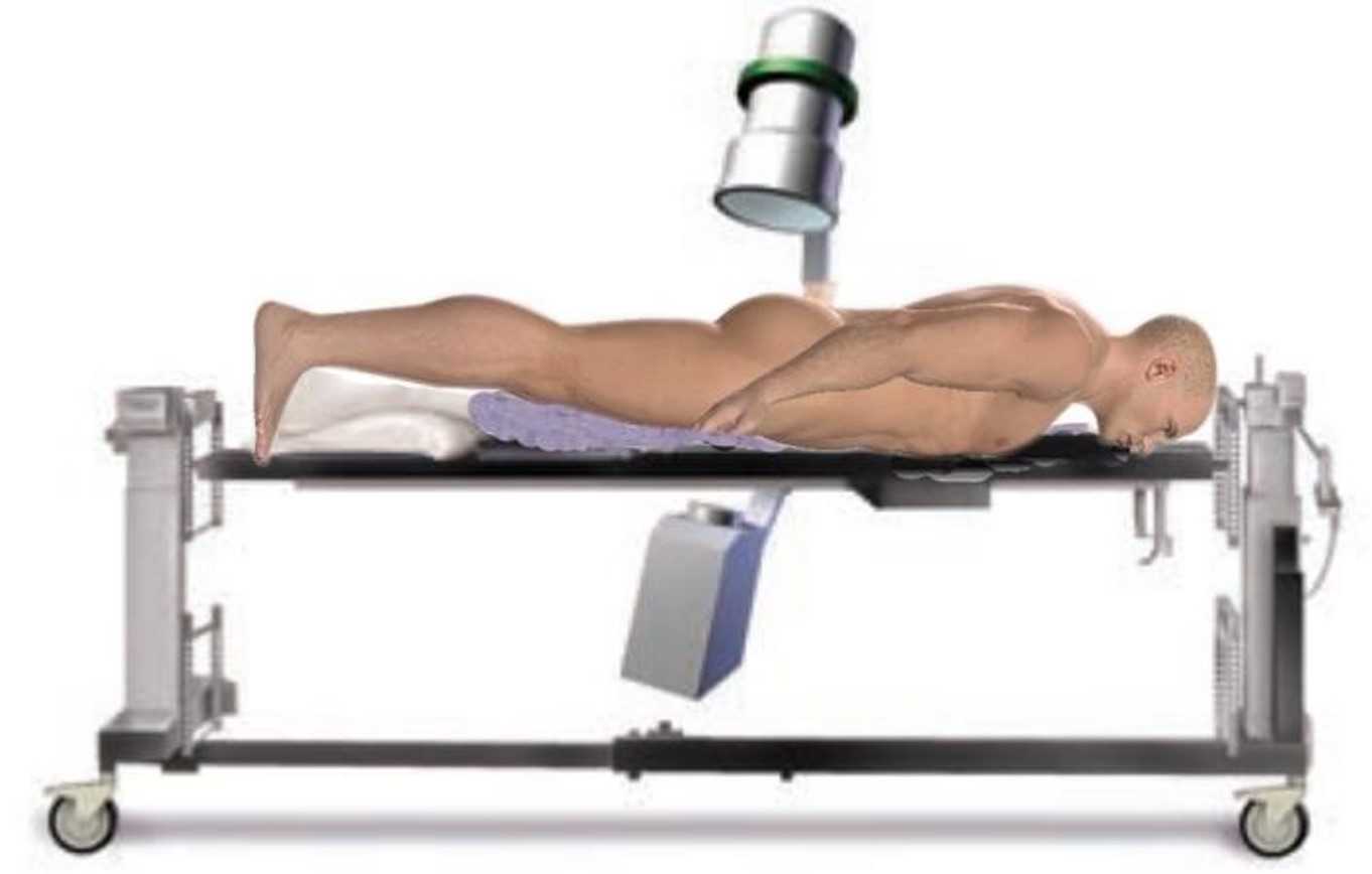 After general anesthesia for endotracheal tube, the patient should be positioned prone, lying flat on the fluoroscopic operating table.